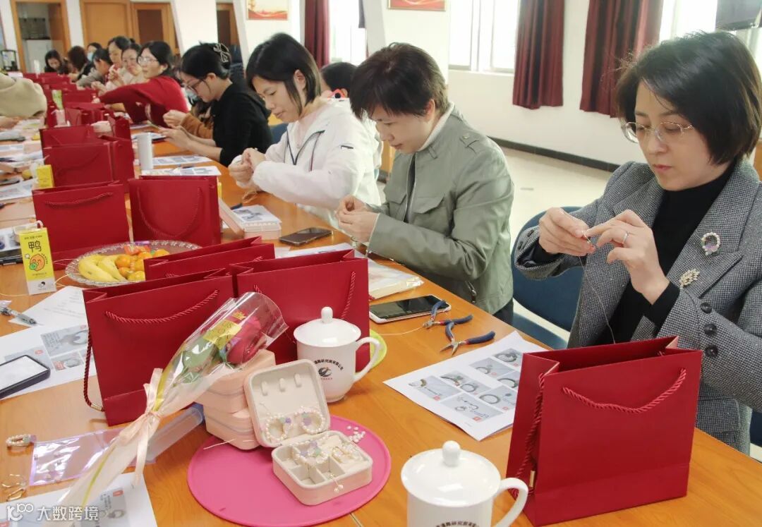 活动现场,在专业导师的指导下,女员工们开始手工制作珍珠首饰和岭南押花。简单的金丝和珍珠,在一双双巧手下,变成了一个个漂亮的胸针、戒指、耳环。大家兴致勃勃戴上亲手做的首饰,为自己送上了一份特别的礼物。岭南押花艺术是广州市级非物质文化遗产代表性项目,是一门囊括各种植物粘贴工艺的传统手工技艺。女员工们精心匹配、拼贴不同花材,最后过塑、装裱,完成了一个个属于自己的“艺术精品”。