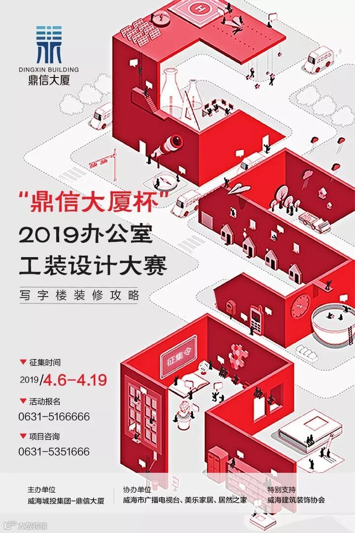 鼎信大厦携手威海电视台及建筑装饰协会,正式启动“鼎信大厦杯”2019办公室工装设计大赛。