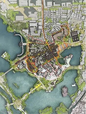 ◆一是根据泮塘五约村内的重点历史建筑线索,恢复具有历史风貌的公共空间节点,新建广场和口袋公园。以东西走向的五约直街为主要轴线,梳理周边的街巷空间,并结合打造完成的公共空间节点,共同形成网状漫游式步行网络。