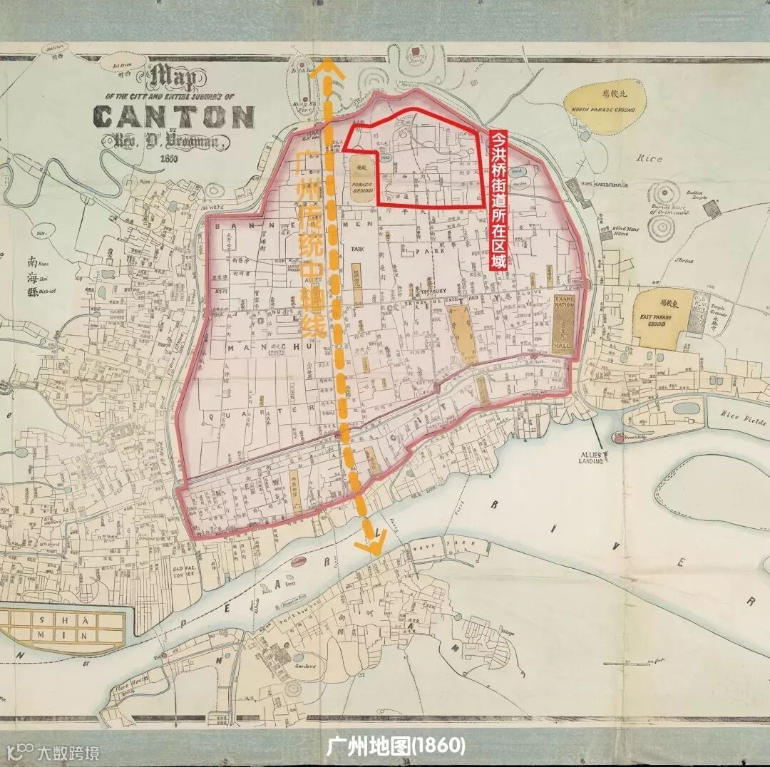 紧伴传统中轴线的洪桥街,不仅有镇海楼、五羊石雕、明古城墙、四方炮台、孙中山纪念碑等名胜古迹,还有越秀山体育馆。