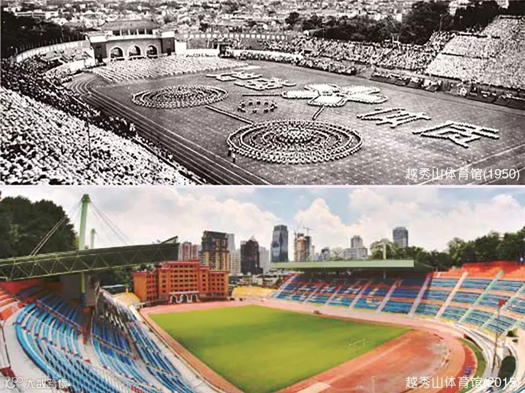 越秀山,原名观音山。《越秀史稿》记载,在民国十五年的春天(1926年4月),第一届广州市辖学校运动会在观音山足球场举办。新中国成立的第二年(1950年),广州市市长叶剑英元帅确定在此修建体育馆,越秀山体育馆由此逐步修建并投入使用。这个足球场,不但承载着几代中国球迷的热情与希冀,而且见证了新中国成立后与各国的友好赛事,并于2010年承办了第十六届亚洲运动会的足球比赛。时至今日,足球赛事前,总能看到长长的球迷队伍,在烈日炎炎下排队购票。