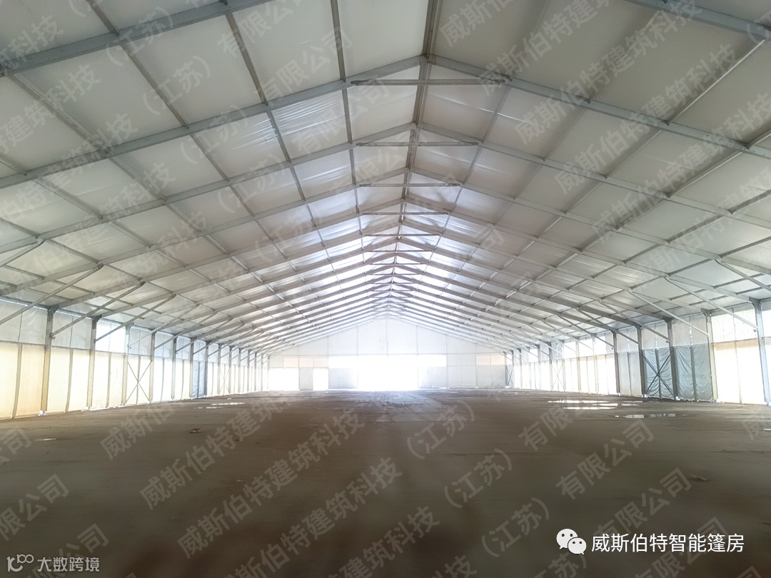 横向跨度达40米,单个工业仓储篷房面积达10000平方米,总面积达20000平余方米,为项目生产,货物存放,物流中转提供了最为理想的解决方案。