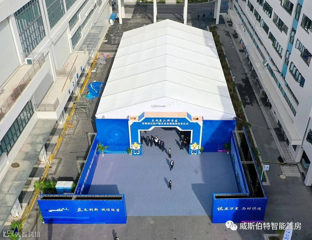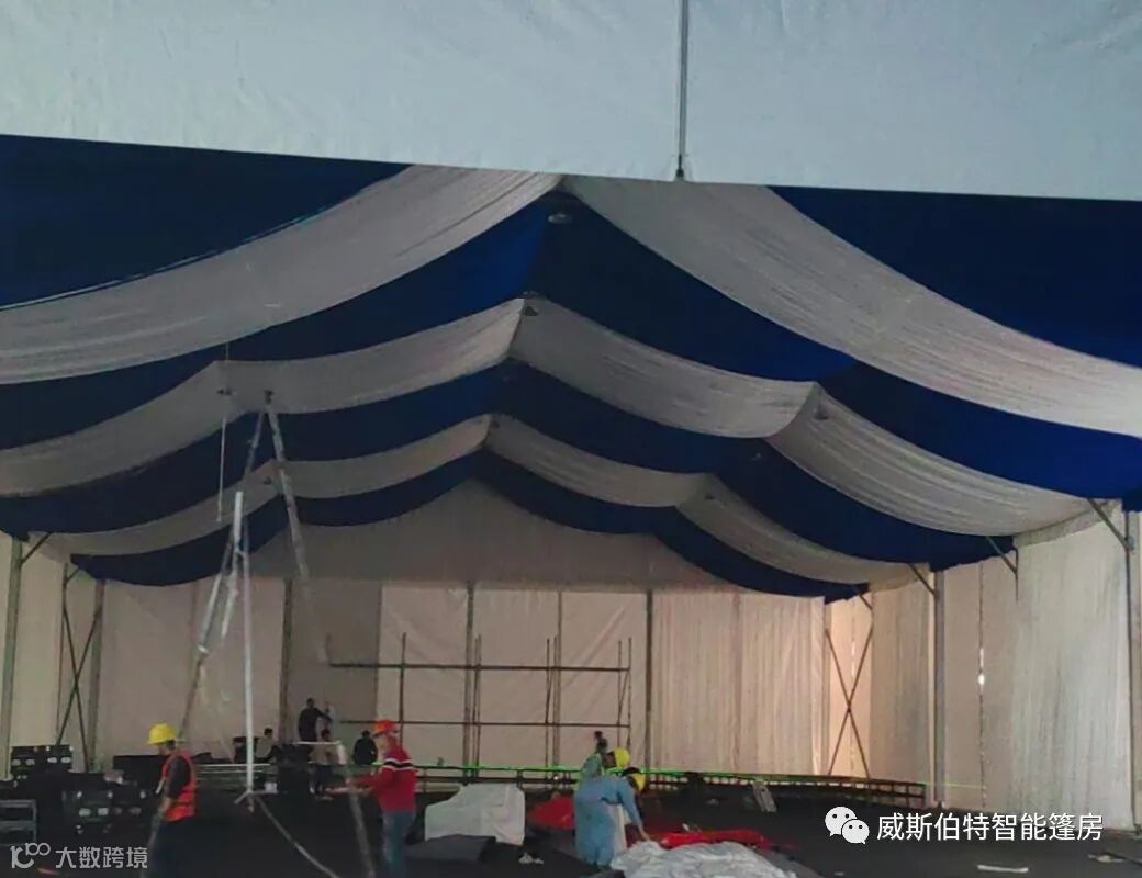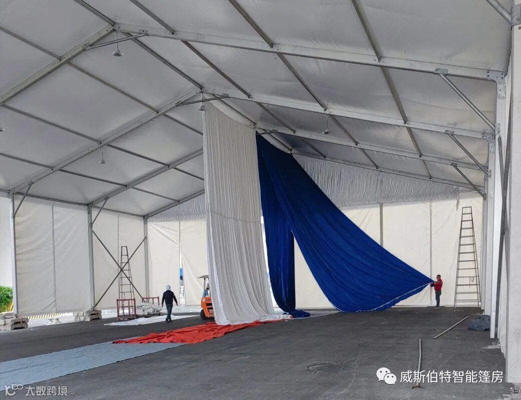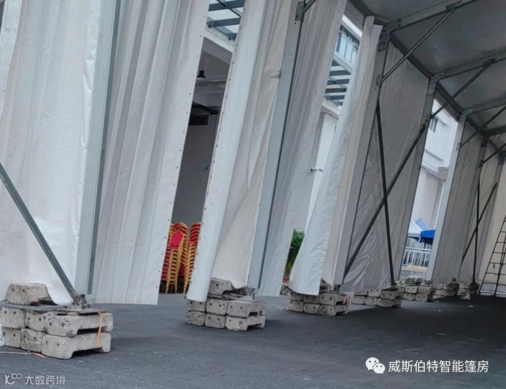 苏州威斯伯特篷房制造有限公司所有产品均采用德国制造标准,主体结构采用高强度铝合金。篷布以聚丝长脂为基布,表面附着PVC膜。篷布以白色为主,其他颜色可定制。威斯伯特智能篷房具有特性有:防风雨、防紫外线、B1级防火、抗寒、抗褶皱顶布、不透光、重量850g/m2,防火阻燃,符合德国DIN 4102 B1,M2标准风载能力 80-100Km/h。