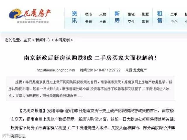 南京龙虎网也报道称,投资客不抢房,改善客群又要开始观望了,部分新盘的客户流失量超过一半。在二手房市场,一些投资客听闻限购令后,立马已经提出了解约的要求,以前的卖方市场一夜之间转变成买方市场,不少卖家已经提出可以降价。
