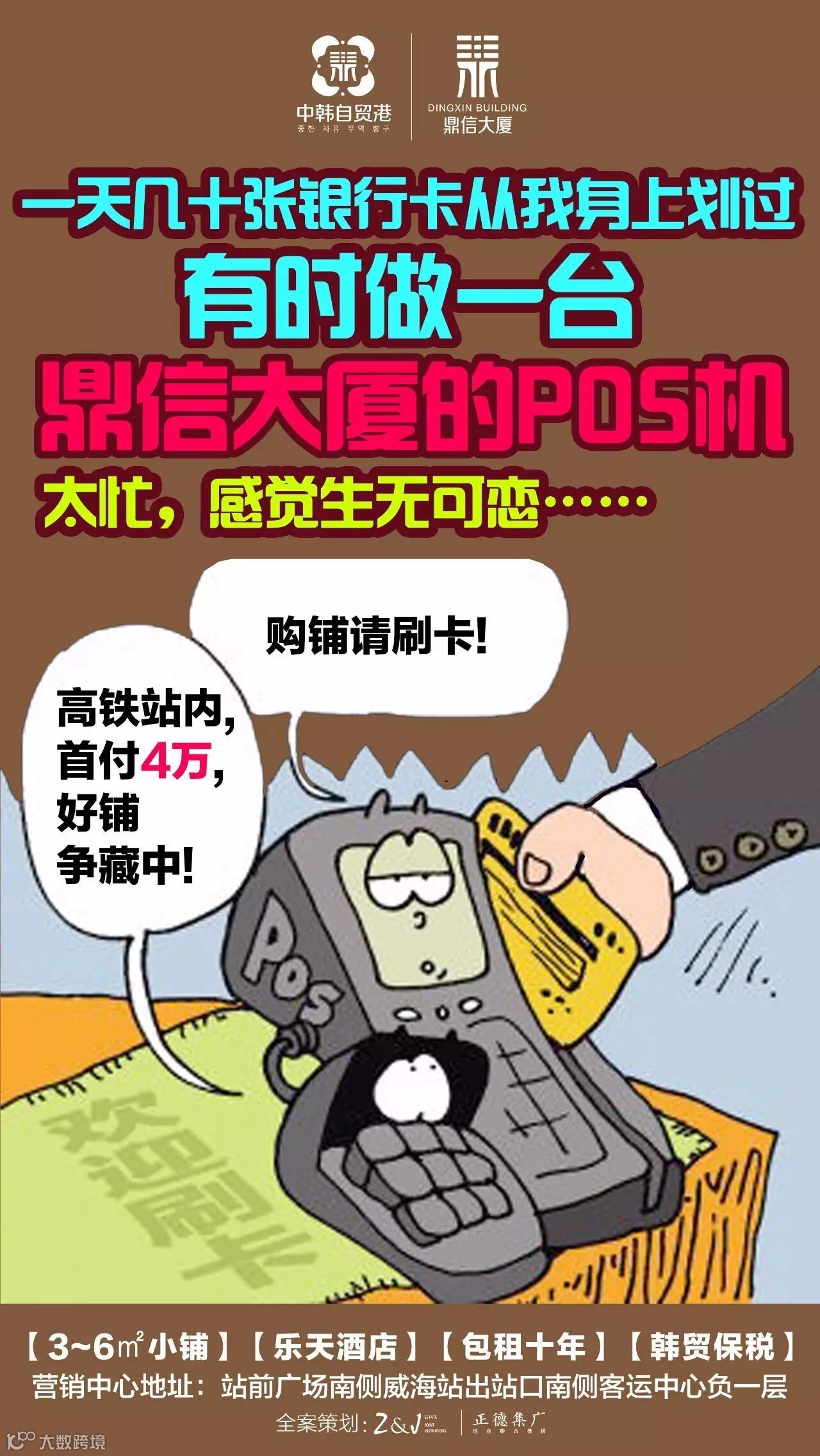 【鼎信大厦-中韩自贸港】项目目前商铺首付4万/套起,包租十年,着眼于威海高铁商圈的良好发展前景,【鼎信大厦-中韩自贸港】现已成功招入韩国乐天酒店,今后必将以绝对的人气磁场,成为区域内最为革新的城市综合体,集商业、酒店、办公一体的商务生活购物中心,成为了威海最具升值价值的不动产!