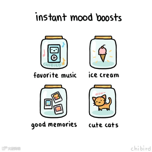 如果今天的你有什么不开心,听首最爱的歌,给自己买一个最贵的甜筒,想想那些让你嘴角上扬的回忆,去摸摸一只毛绒绒的猫咪。