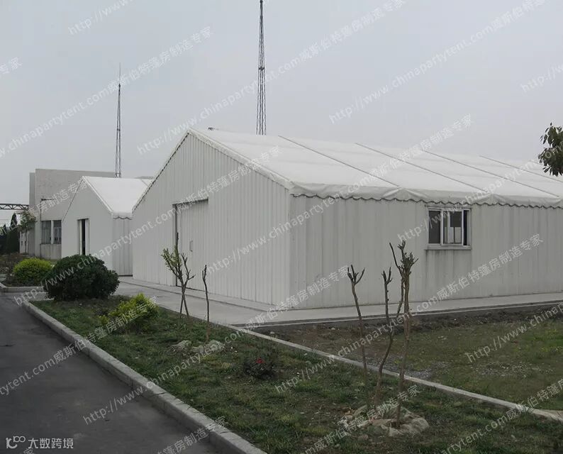 仓库篷房环境:客户销售产品很多时候要求在存储过程中不能受到损害。仓库篷房目前顶部都是采用双层pvc遮光篷布,其具有防水防潮、防潮、阻燃、抗撕裂等优越性能。