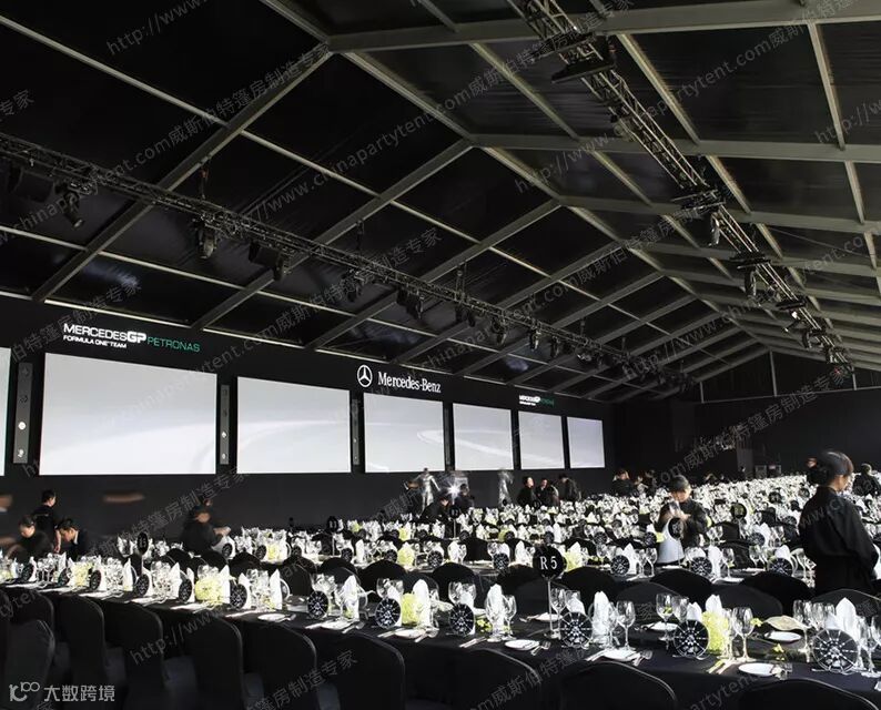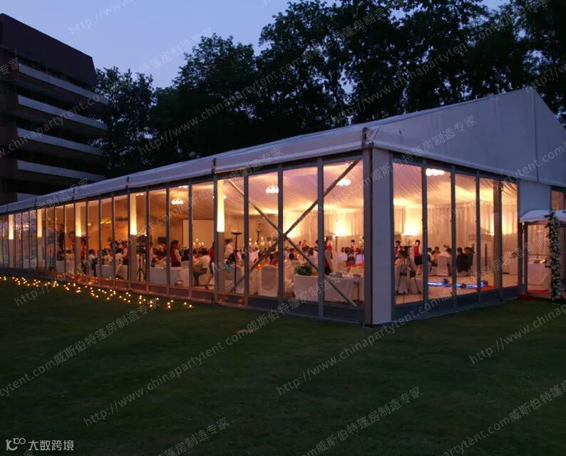 篷房主体结构由高强度6061-T6航空铝合金和钢部件组成,屋顶篷布覆盖了PVC涂层聚酯织物,具有防水,防紫外线的性能,阻燃性符合DIN 4102 B1,M2国际防火等级标准。篷房还能抵抗80公里/小时-120公里/小时的大风。更值得一提的是,我们保证它可以使用至少30年。