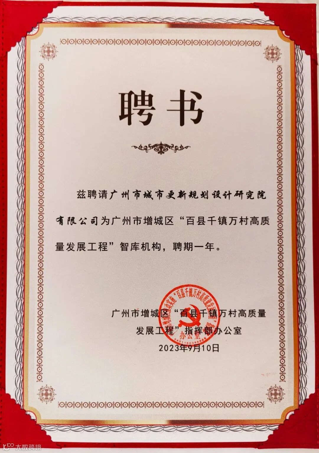 我院长期开展乡村建设的研究与实践,深度参与市、各区“百千万工程”和乡村振兴工作。同时,我院受聘为增城区“百千万工程”首批专家智库机构,全力配合增城区“百千万工程”城建专班及部分镇街开展了包括前期谋划、规划研究、节点设计、建设运营等环节的全流程陪伴式技术服务。并通过系统分析地方价值,研究总体发展目标定位与策略,围绕社会经济、空间风貌、公服设施、生态环境等方面开展针对性设计及明确分期项目库,稳步推进“百千万工程”实施,助力增城区城乡融合高质量发展。