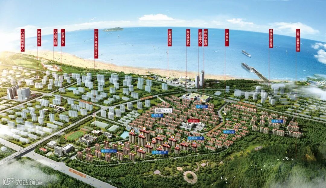 项目地处九龙湾区域,由七大居住社区构成总占地约210万㎡,可容纳5000户家庭,东临大阳山森林公园、摩天岭山体公园,北邻国际第二海水浴场、九龙湾公园……徒步其中拥抱鲜氧与沙滩。家家悦超市现已入驻社区,九龙湾购物中心、W37购物中心等环伺周边,全系吃住行游购学商娱政等多种综合功能于一域,享自在生活。