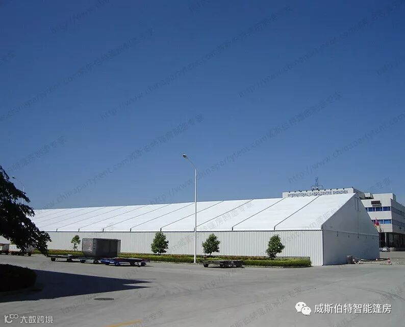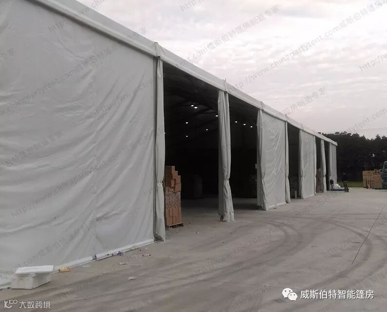 威斯伯特篷房拥有12年的生产厂家,施工专业/快速,即使上千米的仓库,我们也能1-2天快速搭建完成,让您及时投入使用。篷房采用组合式装配,篷房尺寸齐全,跨度3、5、6、8、9、10、12、15、18、20、21、22、25、30、35、40、45、50米各种尺寸都有,长度按3米或5米的倍数无限延伸。篷房中间无立柱,空间可以100%得到利用。