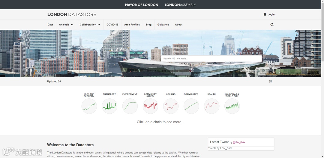 伦敦数据库,拥有18大类,近2000个数据集可开放使用