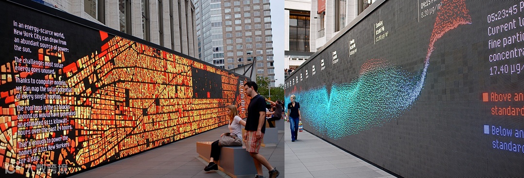 纽约,IBM的THINK展览装置,实时反馈街区建筑、路况、人口等信息