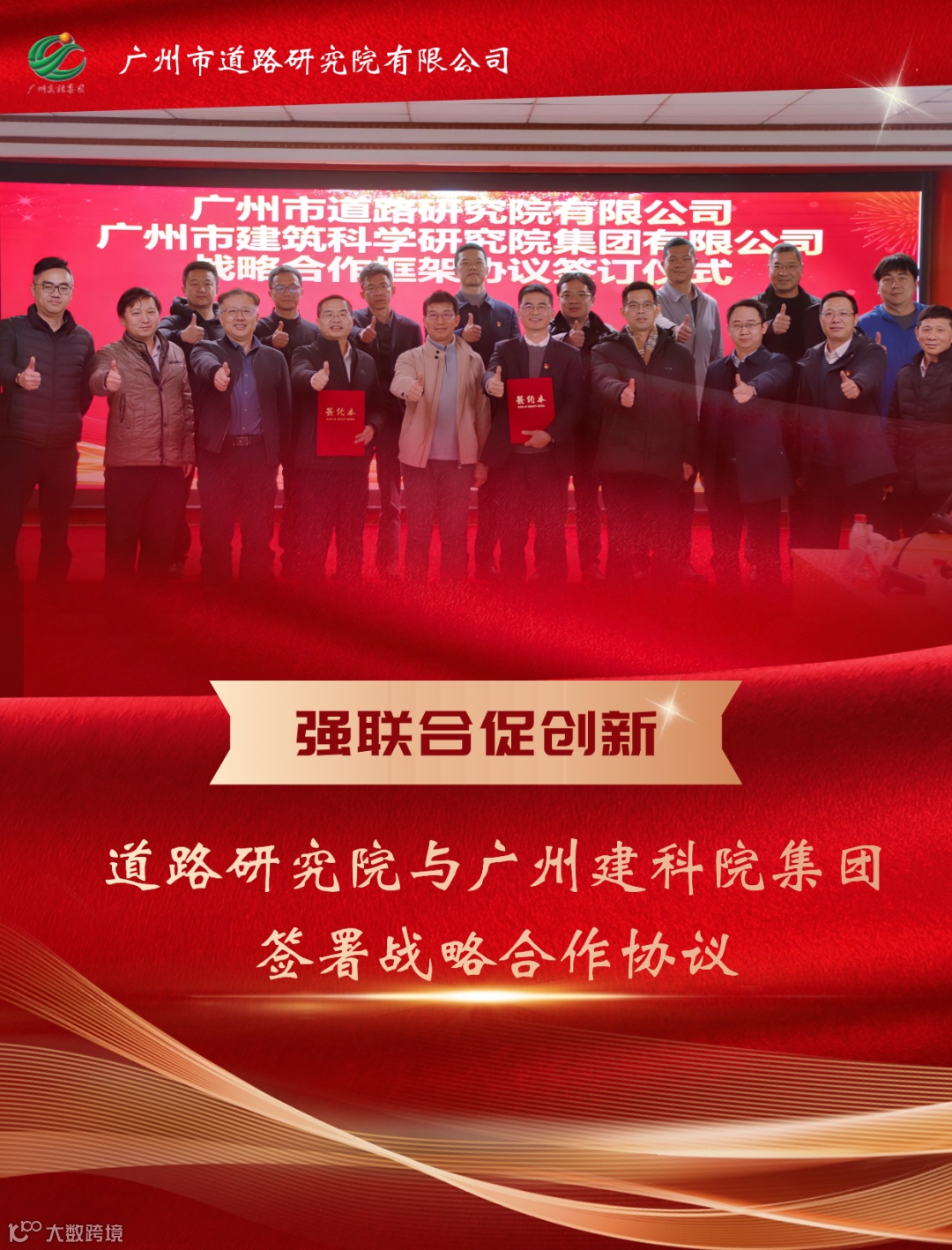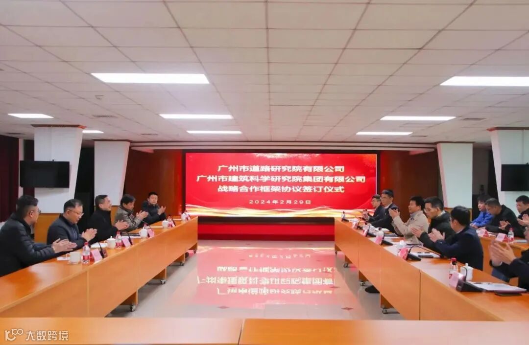 2月29日下午,广州市道路研究院有限公司(以下简称“道路研究院”)与广州市建筑科学研究院集团有限公司(以下简称“广州建科院集团”)签署战略合作协议。集团党委副书记、总经理胡志桥,集团党群工作部部长陈兴华,广州建科院集团党委书记、董事长周治国,道路研究院党委书记、董事长李炎清及双方相关人员出席签约仪式。