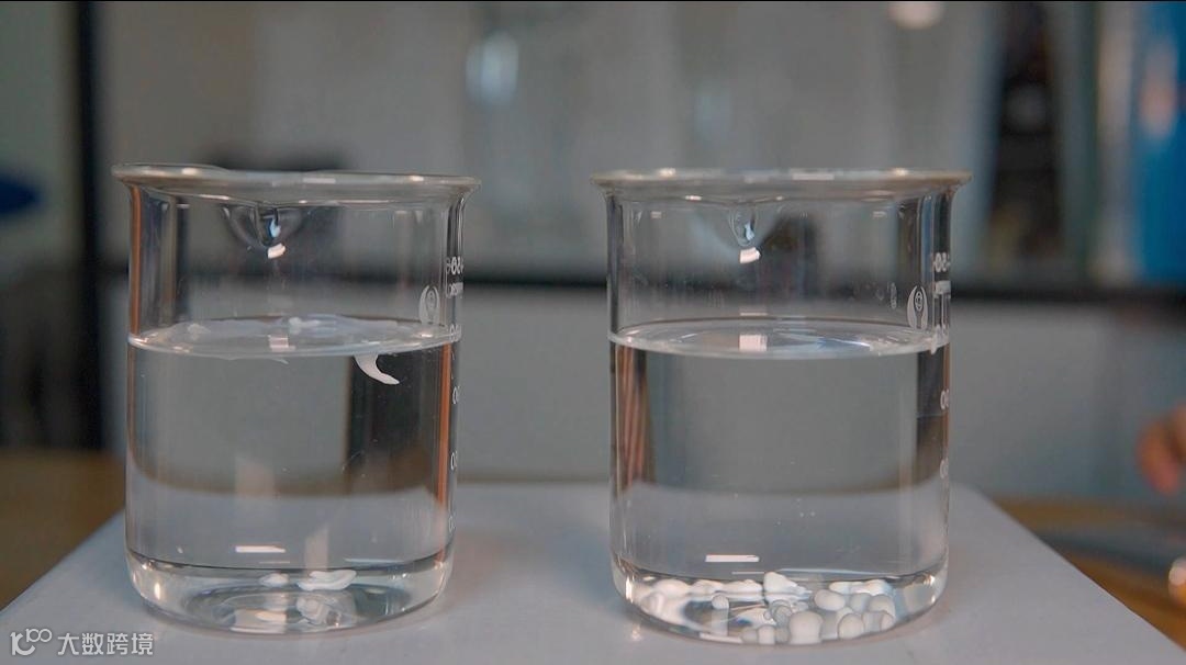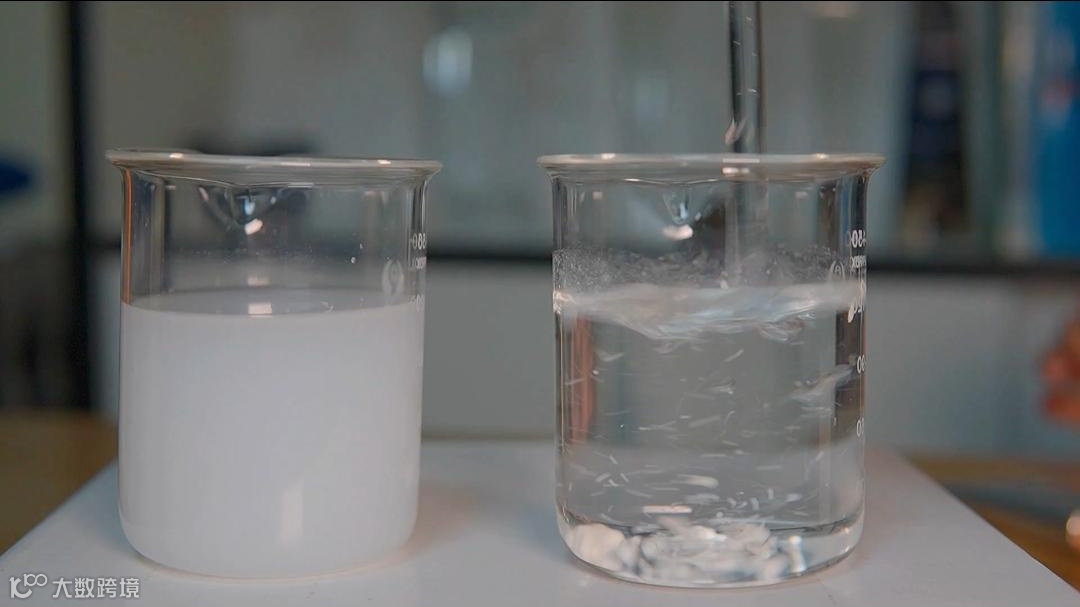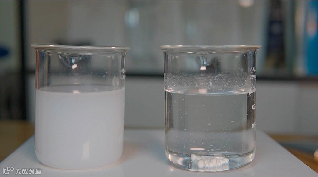 分别进行快速搅拌,左水变得浑浊,右水纹丝不动