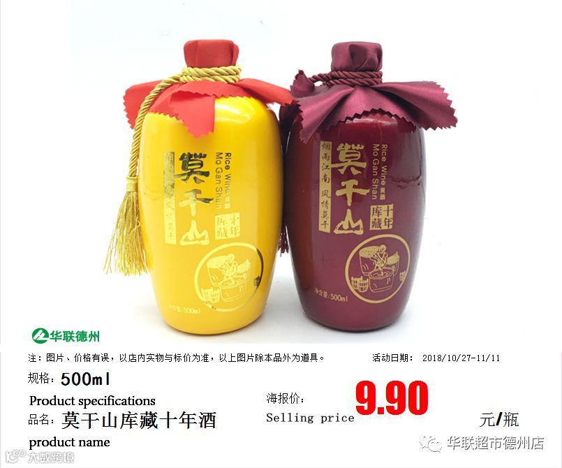 注:以上500ml莫干山库藏十年酒为1瓶零售价。