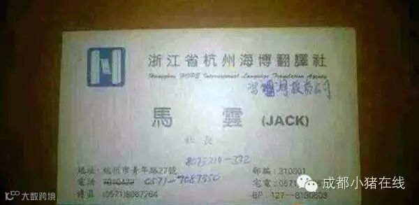 要说马云的名片,那可得从好久之前说起,刚开始他只是个小小的翻译社社长,还有个接地气的英文名叫Jack。