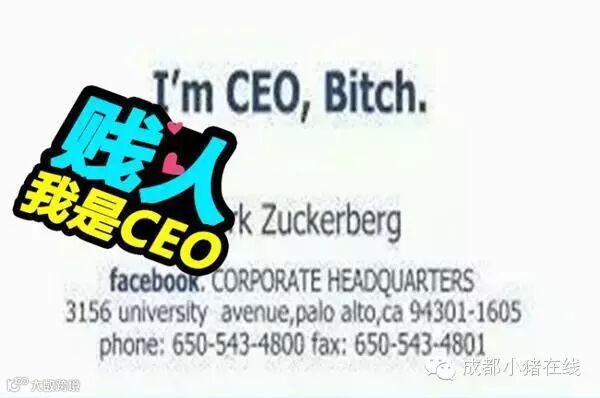 Facebook的大boss扎克伯格的名片更是有范,直接写:贱人,我是总裁。真是够简单粗暴。