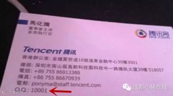 改名QQ之后,马化腾的名片上直接写上了自己的QQ号,看见没~10001,够霸气吧!