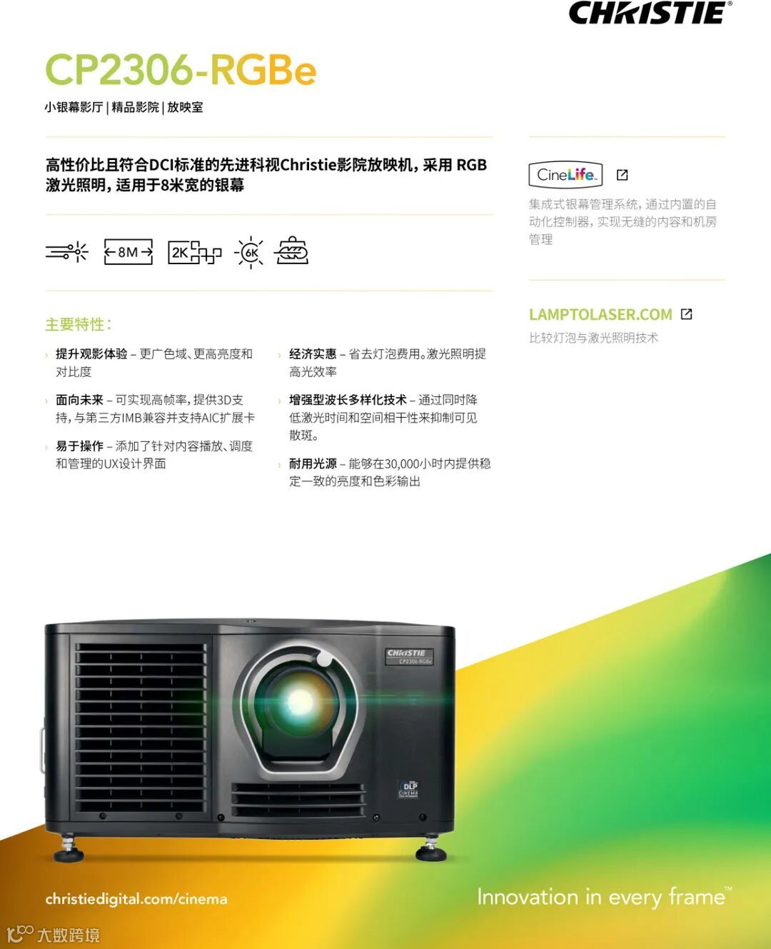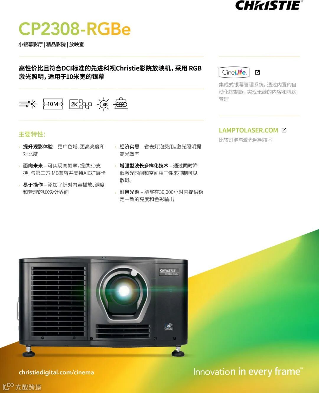 汉威激光以先进的RGB激光技术优势携手美国科视,推出六款通过美国好莱坞DCI认证的数字放映机。