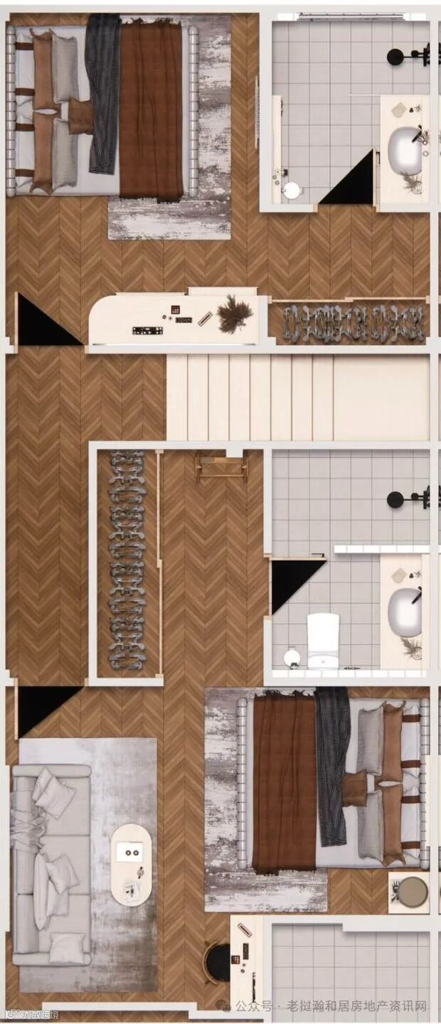 房间数:2房3卫(两房间都带卫生间);两厅一厨