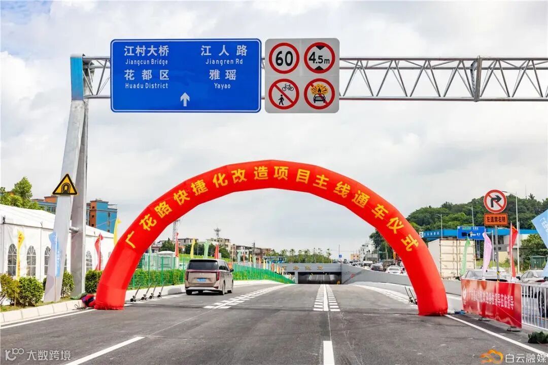 为推动南北干道扩容提质,引领广州北部地区建设,支撑北部增长极发展,近年来广州市推进广花路快捷化改造,全线由双向六车道拓宽为双向八至十车道,并通过节点立体化改造实现主线全线连续,快捷化改造后全程通行时间缩短至30分钟,沿线居民出行品质大幅度提升。