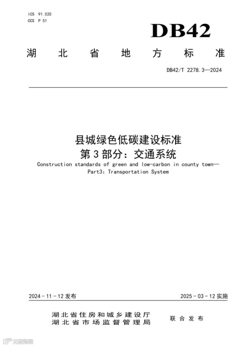 主编国内首个适配县城交通发展特色的湖北地方标准——《县城绿色低碳建设标准第3部分:交通系统》并印发实施,引导交通设施建设绿色低碳发展。