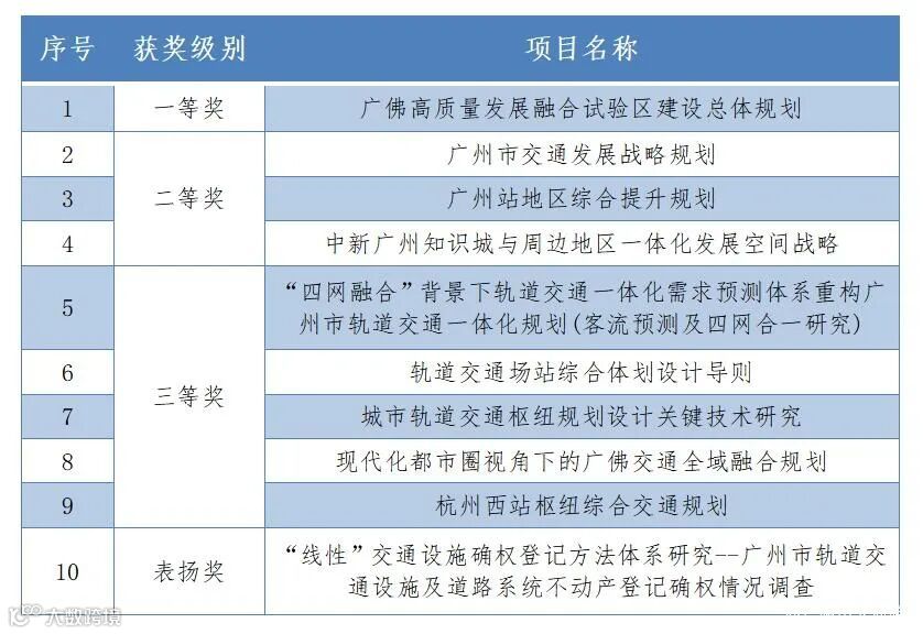 中国城市规划协会近日公布了2021年度优秀城市规划设计奖获奖项目,广州市交通规划研究院有限公司主导及参与项目荣获10项大奖,其中一等奖1项、二等奖3项、三等奖5项、表扬奖1项。