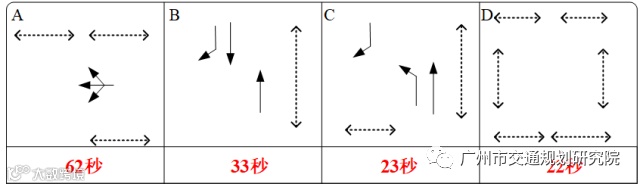发现该问题后经研究,采取以下优化措施:在拥堵时段(9:00—13:00、15:00—20:00)设定预案优先东进口道放行(绿灯放行时间由62 s提升至70 s)、在一个周期里分两次放行东进口相位(A相位、D相位)以提高绿灯的利用率。
