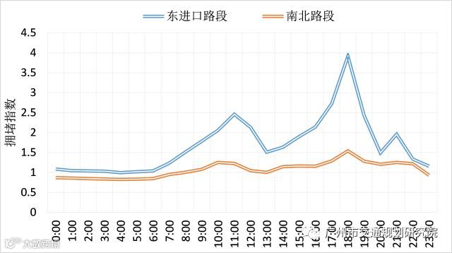 某交叉口是主干路上的重要交通节点,全天交通流量较大,其中早高峰结束后东进口道交通量有明显增加。通过高德地图对交叉口进行观测发现东进口道经常出现交通拥堵,而南北方向的交通运行情况较好,进一步对东进口道所在路段的拥堵指数分析发现该路段在9:00—13:00、15:00—20:00的拥堵指数较高,交通拥堵严重,而相交路段全天的拥堵指数基本没有变化,交通运行情况较好。