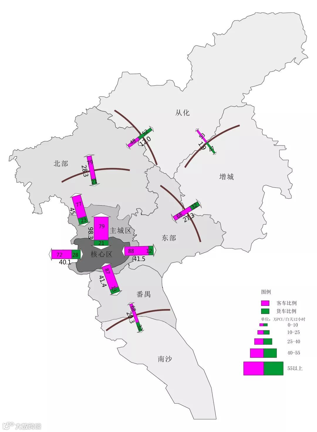 交通年报从编制以来就固定的对核查线进行调查,但核查线数据从从外到内分别为:①市域核查线:反映广州与周边城市的交通联系;②外围区核查线:反映广州都会区与新城的交通联系;③主城区核查线:反映主城区与外围的交通联系;④核心区核查线:反映核心区与主城区的交通联系;⑤核心区内部核查线:反映核心区内部一江三岸、新老中心区等交通联系。
