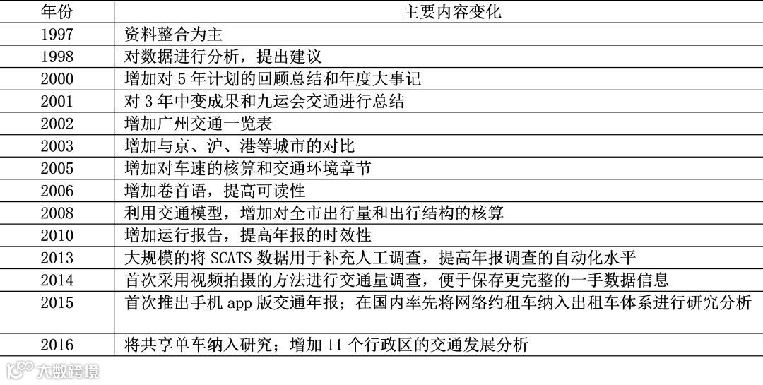 (1)内容从技术文件转向辅助决策:广州交通年报从编制第2年开始就着手对资料进行分析,对上年的空间规划、交通管理提出反馈,并提出相关建议。