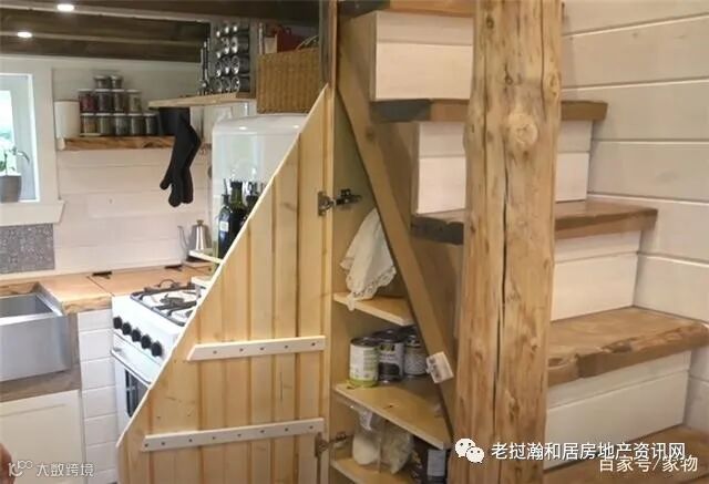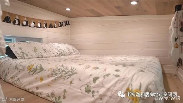 而另一侧的厨房上方,则是全尺寸的大床垫,夫妻二人平时就睡在这里,完全不会感到拥挤,只是层高略低,这也是由于户型过小而不得已做的妥协。