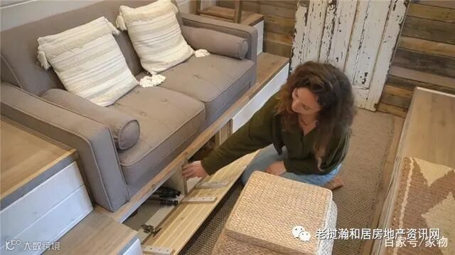 不说沙发旁边的边几&阶梯内都是抽屉,单说沙发下方,就有一处拉门收纳空间,夫妻二人会在这里放一些摄影器材之类的杂物~当然,对面的飘窗柜内也是同样的结构~