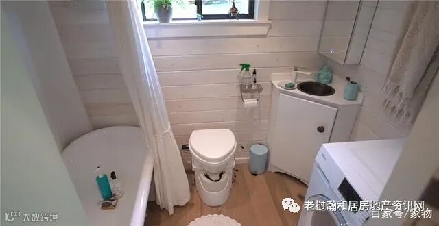 进入小卫生间内,真没想到这么小的空间也塞下了一个躺式的浴缸和滚筒洗衣机,他们分置于卫生间的各个角落中,尤其是角落处的超迷你洗手台,就更是充分利用了转角的空间。
