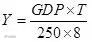 式中,GDP表示城市的人均GDP产值,T表示节省的时间数,250表示一年中有250个工作日,每个工作日以8个小时工作时间计。