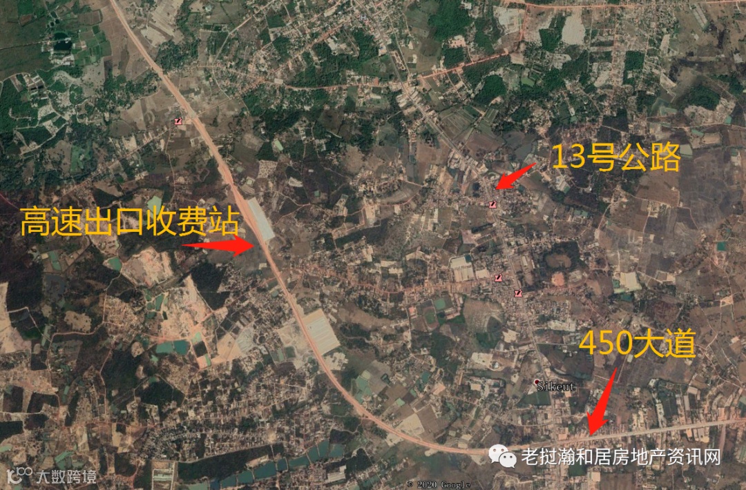 高速出口处,1.5公里---13号公里入内400米---12米土路