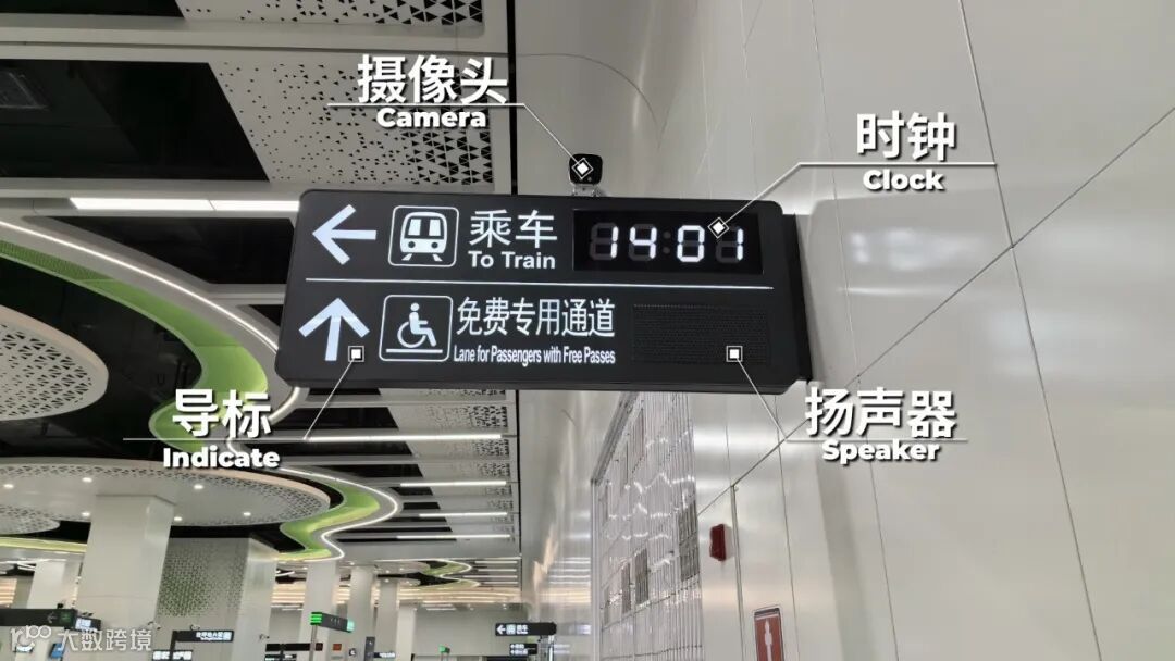 3号线四期采用机电末端设备与装修一体化设计,全面优化站内导向、通信点位数量,共架、上墙、贴柱设置。相邻终端设备(导向、摄像头、平板扬声器、时钟等)在不影响功能使用前提下进行一体化整合设计。天花装饰面板、终端设备结合综合支吊架安装,大幅缩短吊杆长度,减少吊杆数量,节约建设成本,车站空间简洁美观。