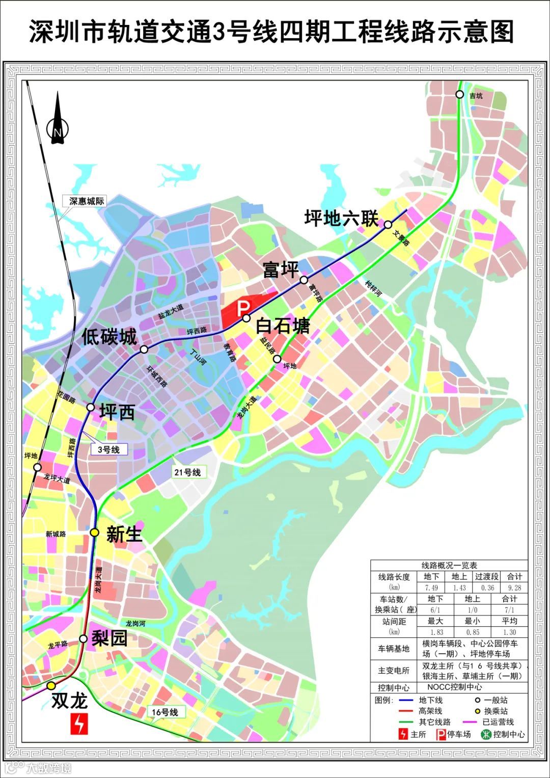 深圳3号线四期全长9.28公里,设站7座,其中梨园站为高架站,其余均为地下站。3号线四期的开通不仅加强了龙岗中心区与坪地片区之间的轨道交通联系,缓解了龙岗坪地间的交通出行压力,还搭建起城市东部组团与福田中心的快速通道,填补了坪地轨道交通网络的空白。