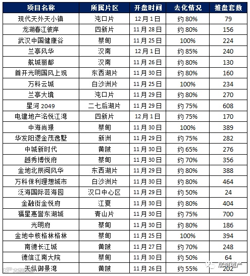 2019年11月第4周武汉楼市开盘去化情况: