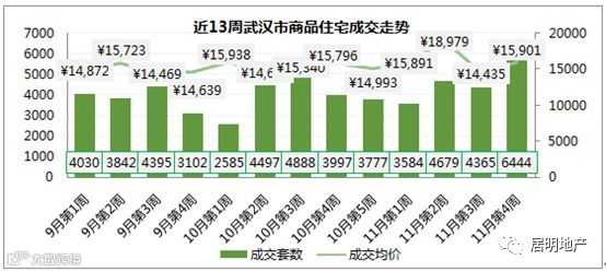 受汉口中心区、古田片、光谷新中心、汉阳中心区等主城区成交占比继续上升影响,当周均价15900元/平米,环比上涨10.2%,同比上涨3.1%。