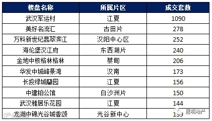 2019年11月第4周武汉商品住宅成交套数TOP10: