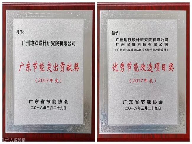 我院获得2017年度“广东省节能突出贡献奖”、广州地铁车陂南环控系统节能改造项目获“优秀节能改造项目奖”。设计总体部刘丽萍、环境工程所周平代表我院上台领奖。地铁车陂南站环控系统节能改造项目为设计院立项的科研项目,同时也是国家工程实验室的支撑项目。