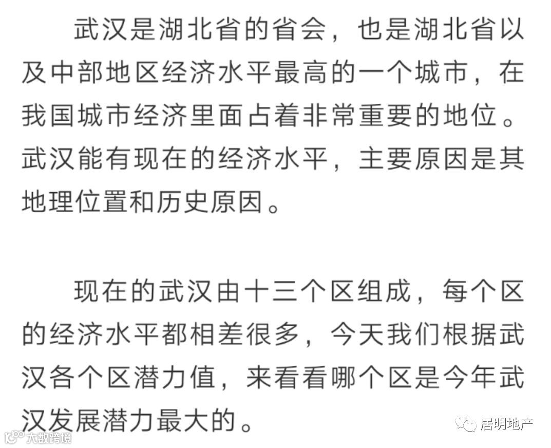 武汉的这十三个区里面经济水平最高的区是江汉区,是占武汉三镇汉口最多的区,而且也是2018年我国的百强区之一。很多人觉得武汉发展潜力最大的区就是江汉区,但经济水平最高并不代表发展潜力最大,正是因为经济水平最高,所以江汉区肯定不是发展潜力最大的。