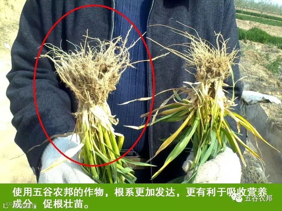 三是在植物受到病害、冻害、干旱、衰老等逆境时,施用五谷农邦微生物菌肥,其中所含的菌种能诱导作物产生超氧化物歧化酶,消除因逆境而产生的自由基,从而提高作物的抗逆性,减轻病害。