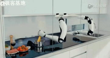 这是来自英国的Moley Robotics公司最新研发的黑科技——机器人厨房系统。这套系统号称是“世界上第一款自动化厨房”,可实现完全自动化的烹饪体验。机器手臂体内配有129个传感器,20个电动马达,24个关节,能完全模仿人类手臂的动作,还能保证每道菜的口味一模一样。