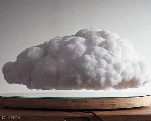 这款设计名为“天气制造”(making weather)项目,由一个金属基座,以及距基座上方一英寸处漂浮的逼真云朵设计组成,内置有一个蓝牙播放器和声音感应LED灯,能够在音乐播放时营造出虚拟的“雷暴”景象。