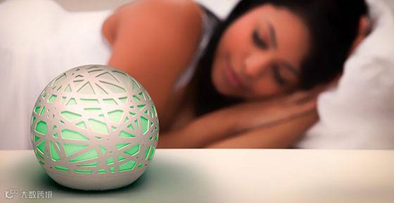 要是闹钟也会进化的话,那么Hello Sense或许就是闹钟进化的终极形态。Sense的主要功能是发现任何潜在的影响睡眠质量的因素。包括两个部分,大的放光球体,可以摆放在床头,小的传感器可以夹在枕头上,它会把用户的移动信息发送给主体球。