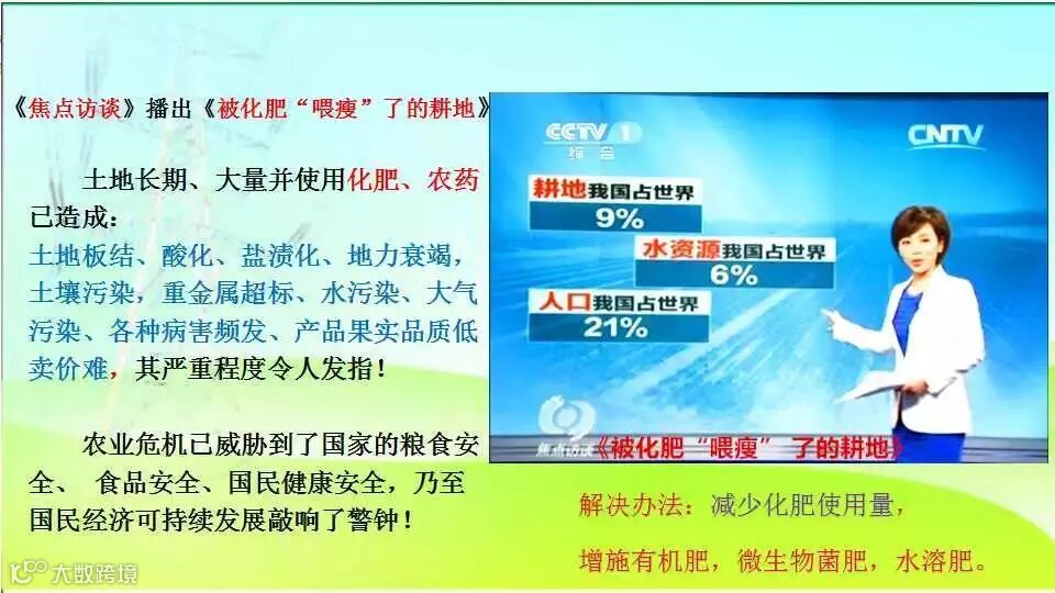 土地长期、大量使用化肥、农业已造成土地板结、酸化、地力衰竭、土壤污染等多种危害,严重威胁到了粮食安全和食品安全。