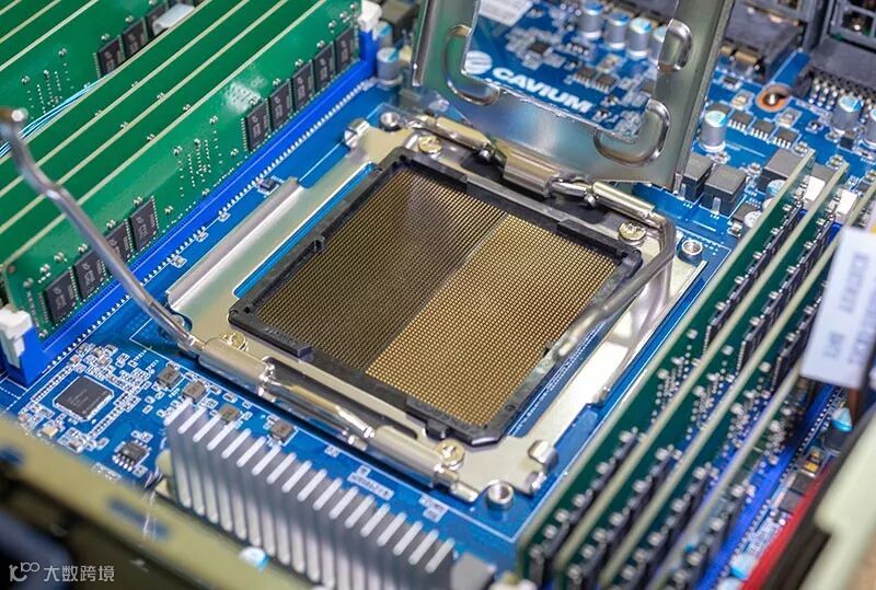 以上两张图片清晰的展示出ThunderX2的产品尺寸比竞争对手的产品尺寸小得多(照片中展示的是32核ThunderX2)。